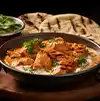 Butter Chicken Tender chicken cooked in a creamy, buttery tomato gravy with a perfect blend of aromatic spices.