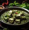Palak Paneer Soft paneer cubes cooked in a smooth spinach gravy infused with garlic, spices, and a touch of cream.