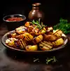Barbeque Potatoes Baby potatoes marinated in a smoky BBQ sauce with garlic, herbs, chili flak