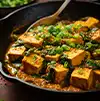 Palak Paneer Soft paneer cubes cooked in a smooth spinach gravy infused with garlic, spices, and a touch of cream.