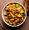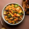 Veg Jalfrezi A colorful stir-fry of mixed vegetables in a tangy, mildly spiced tomato-based sauce.